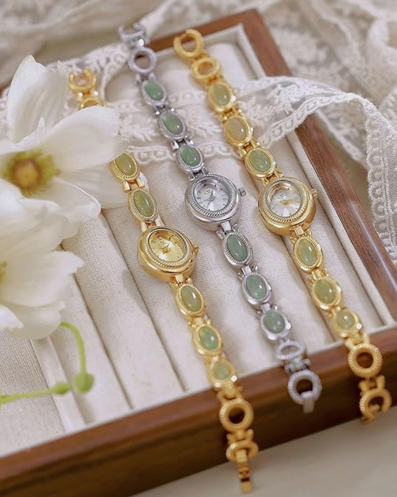 Elevate your style with this luxury vintage-inspired silver watch designed for women. Featuring a delicate oval face adorned with colorful jade crystals, this dainty bracelet watch combines elegance with functionality. Its quartz movement ensures precise timekeeping, while the waterproof bangle design offers durability for everyday wear. Perfect for dressing up any outfit, this Italian-crafted timepiece blends classic charm with modern sophistication.