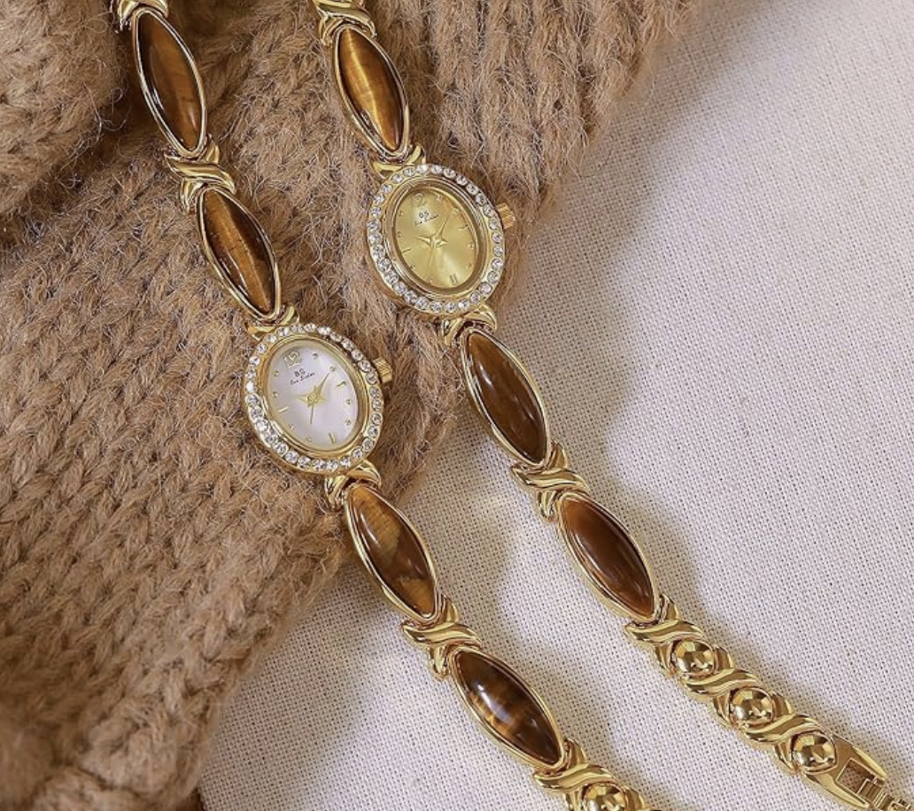 Experience timeless sophistication with our luxury vintage gold watches for women. These dainty bracelet watches feature a small oval dial embellished with jade-colored crystals, combining classic elegance with modern quartz accuracy. Designed as a waterproof bangle, they offer durability alongside refined style. Choose between the V diamond gold and V diamond brown options to perfectly complement your wardrobe and elevate your dress watch collection.